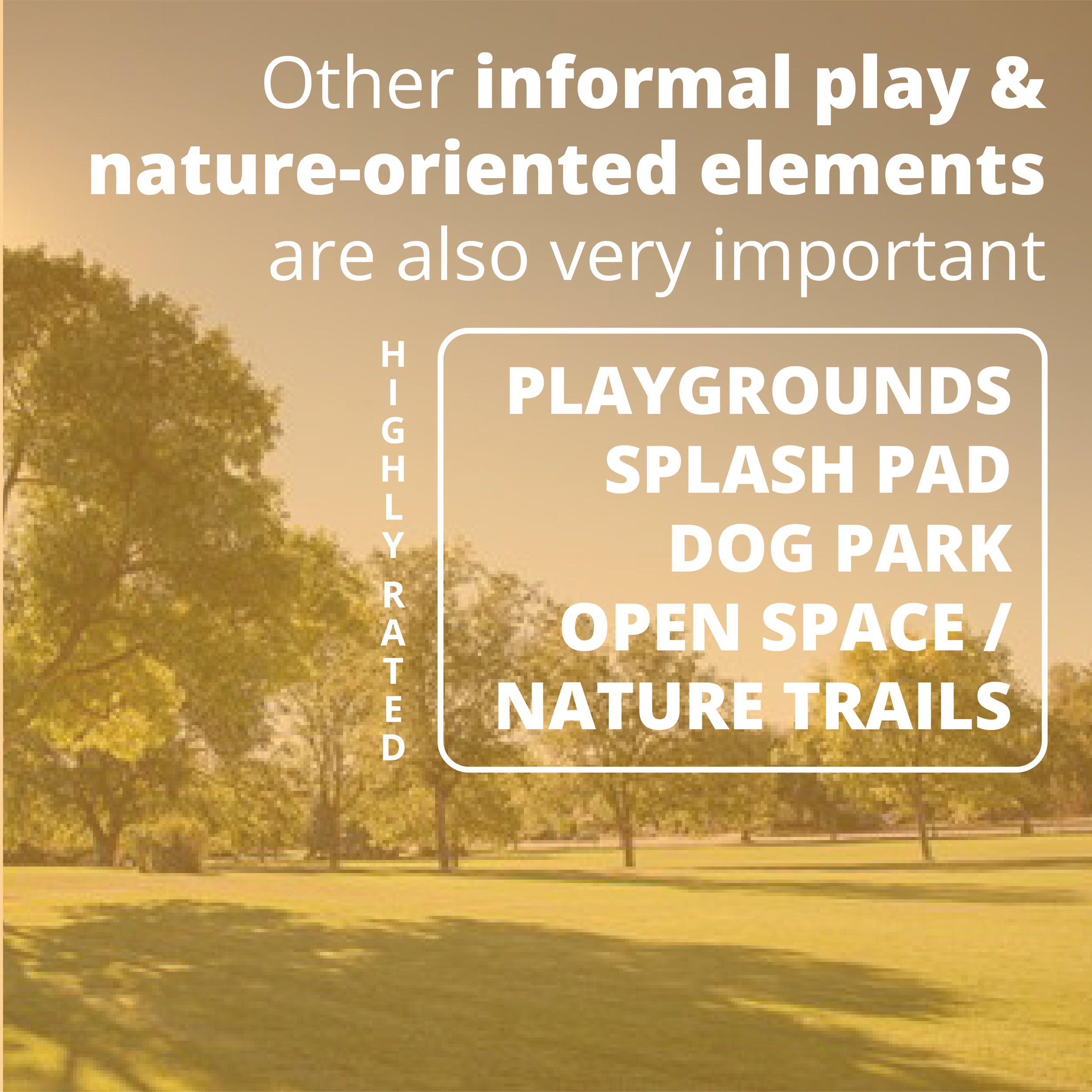 Feedback prioritized preliminary concept #3, “Organic Play,” due to its unique and diverse park amenities. This option was further refined into the Preferred Design Concept.